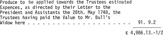 And to represent likewise, that the Trustees have been obliged to pay £158,15.1 for Charges attending the Indians coming down to Savannah, To receive the Presents sent them by his Majesty in the Year 1748, for which no Reserve was made to answer the Expence thereof; All which amounting to £247.7.11 1/2, the Trustees desire his Grace to lay the same before their Excellencies the Lords Justices, for their Order of Reimbursement.