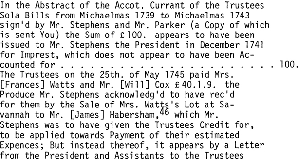 22. This letter has not been located, but is summarized in the Trustees’ minutes of Dec. 21, 1747, CRG, I, 505.
