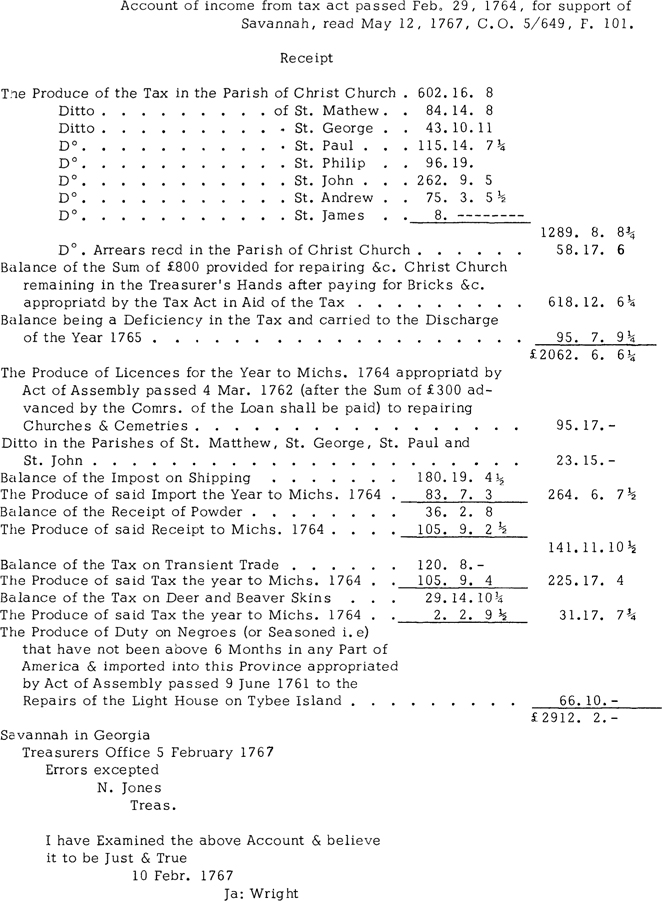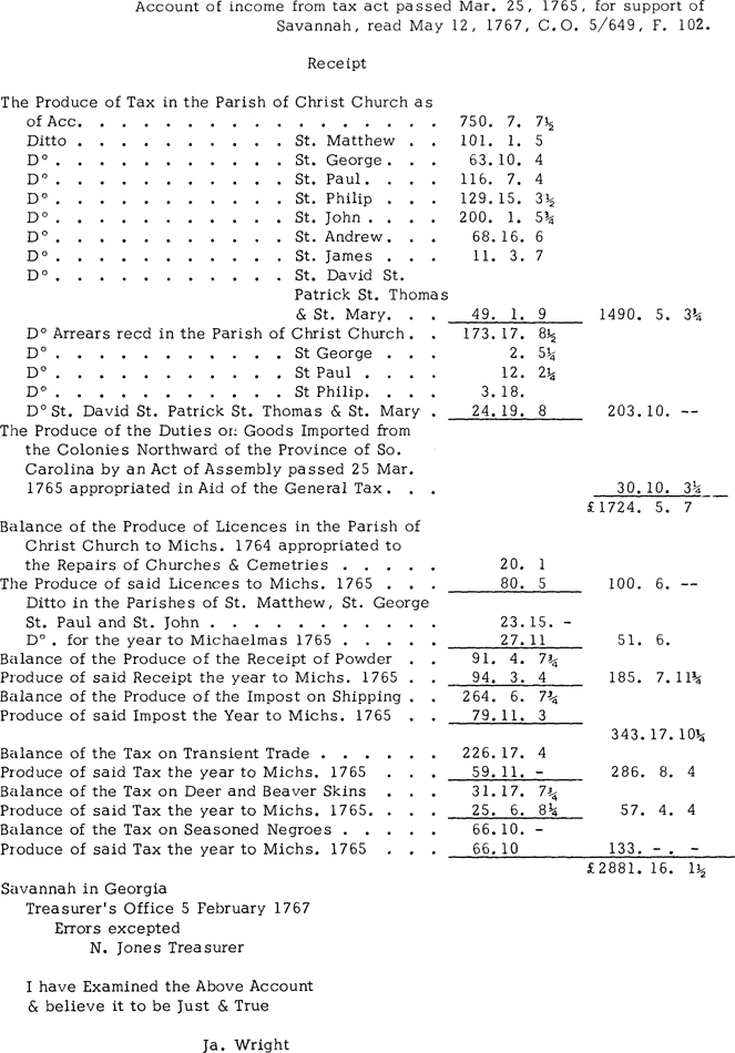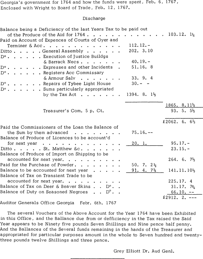 Minutes of the Governor’s Council, Feb. 3, 1767, Savannah, read July 29, 1767, C. O. 5/649, F. 110, concerning the financing of the lazaretto.46 In Wright to the Board of Trade, June 15, 1767.