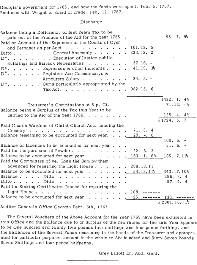 James Wright to the Board of Trade, Sept. 2, 1765, Savannah, received Nov. 10, 1765, read June 27, 1766, C.O. 5/649, F. 60, regarding expenditures in Georgia.
