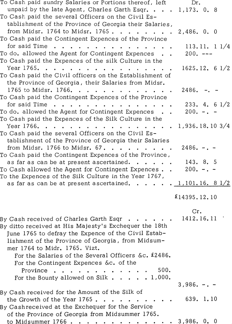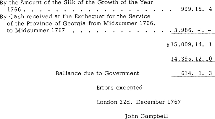 Account of John Campbell, Board of Trade Agent for Georgia, Dec. 22, 1767, London, read Dec. 22, 1767, C.O. 5/650, G. 9.