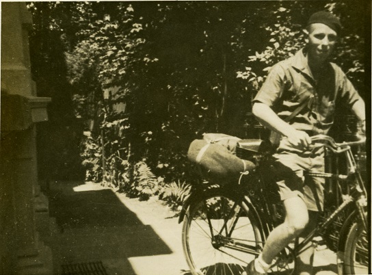"After two days of sight-seeing in Rotterdam and The Hague, I left for a short visit with friends in Gotha, Germany. There I purchased an excellent Original Reinhardt bicycle. It was a case of love at first sight. The moment I first laid eyes on the beautiful blue steel frame of this sturdy steed, I knew that Bucephalus was meant for me. It was merely a matter of seconds before I had dashed into the bicycle shop, flung sixty-seven Reichmarks on the counter, and breezed out the door with my new found friend."