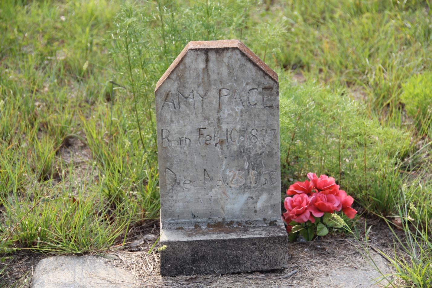 Amy Pace grave marker, Creek Stand AME Zion Church Cemetery (photograph by the author)