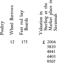 150. Acres of such Land (being independent of Reservoirs &ca.) makes what is commonly reckoned a compleat Rice Plantation, sufficient for the direction of one Manager (& when in order is the best Land for Indigo Provision &ca.) grows better the Longer it is wrought, and will produce three barrels containing 550 lb. Net Rice annually to the Acre (altho some have made five barrels) is 450. barrs. at £3 Sterling per bbl.          £1,350