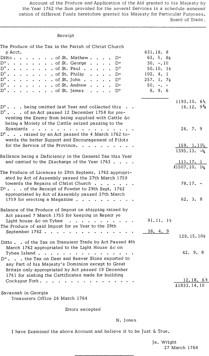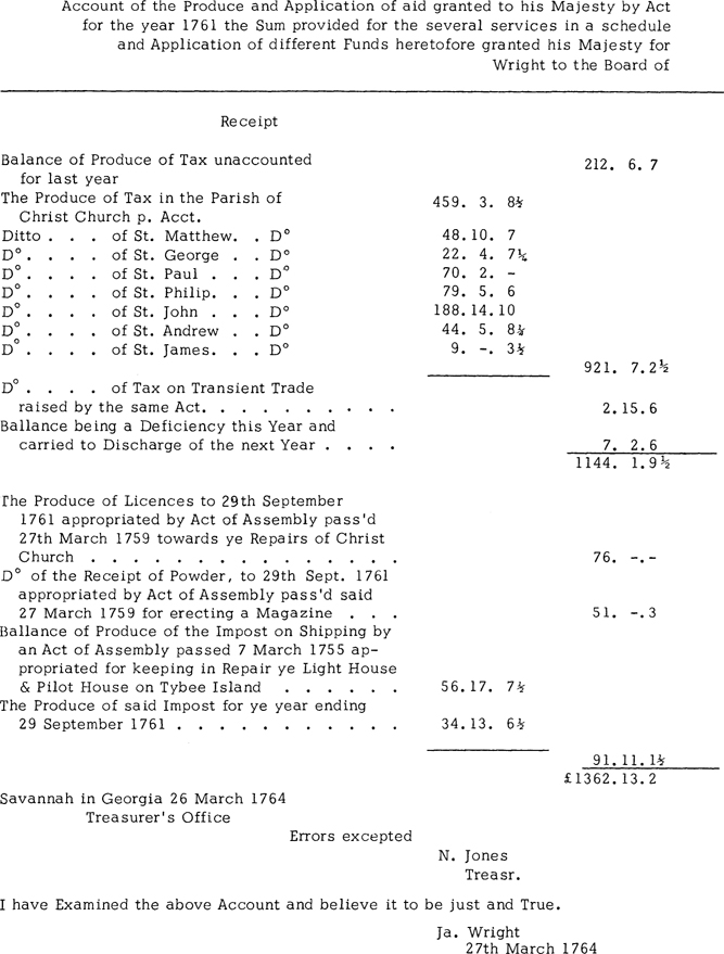 James Wright to the Commissioners of Customs, Jan. 14, 1764, Savannah, received March, read July 9, 1764, C.O. 5/648, E. 94, about illicit trade. Enclosed in Wright to Board of Trade, Feb. 4, 1764.