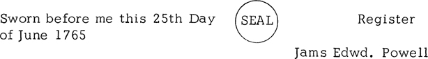 Sworn in Court before me this 29th Day of March 1765