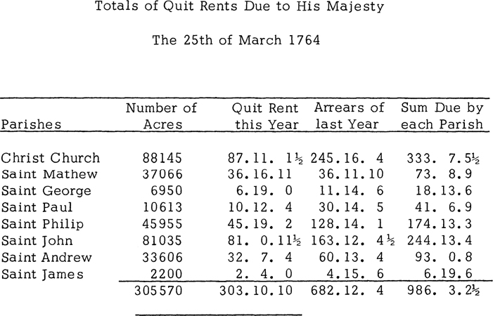 To Samuel Wallace for 100 Acres of Land in St. Philip’s Parish. Registered 10th August 1763.