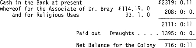 The Trustees hope for a publick Encouragement of the [next] meeting of the Parliament, that may enable them to send over a considerable Number of People, for strengthening the Colony. At present the Subscriptions come in but slowly, which you will observe by seeing the State of the Cash, which for Your satisfaction Sr. is here drawn out.