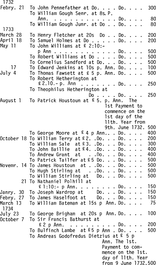 The following Sums being charged on Mr. Thomas Causton as received or receivable by him for the Trustees of Georgia, being advanced by them on the Credit of the Claims the following Persons had in Georgia, and to be placed to the Trustees Account as received; To which Charge Mr. Causton having objected, for that no Part of such Sums came to his Hands. I have therefore sent you Copies of the Articles, as they stand in Charge; And desire that you will transcribe them, and lay them before the special Commissioners appointed to examine and state his Account with the Trust, that they may report if the same are chargeable on the said Mr. Causton, or remain unreceived, or unaccounted for by the Persons who were to pay the same for the Trustees Use. vizt.