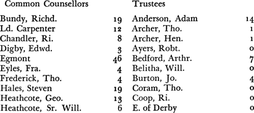 The Number of Trustee Boards held this year were 40; & of Common Council 26. The Number of days the Gentlemen met on were 47, And the Number of times each of them attended were as follows: