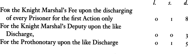 A SCHEDULE of such Fees as are Appointed and Established by the Judges of the Court of the King’s Palace of Westminister, the 17th Day of December 1675, Annoque RR. Car. 2di27°, to be from henceforth Taken and Received by the Keeper of the Prison belonging to the said Court, as followeth, viz.