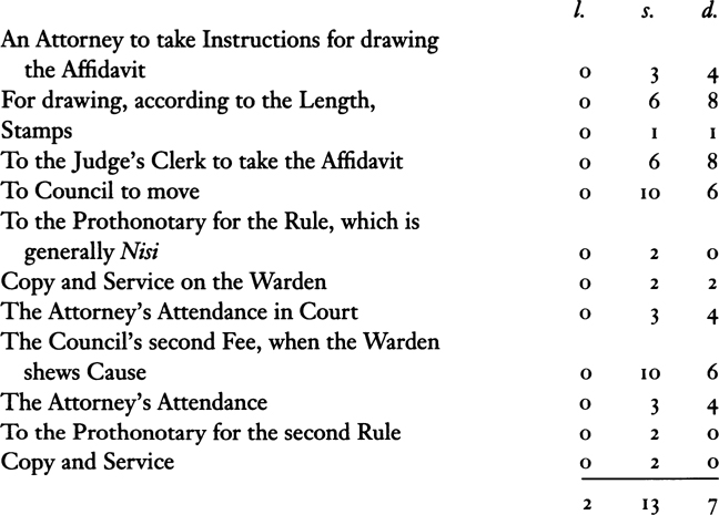 The Expence of the meanest Prisoner, on the first Motion to the said Court for Redress, is as followeth, viz.