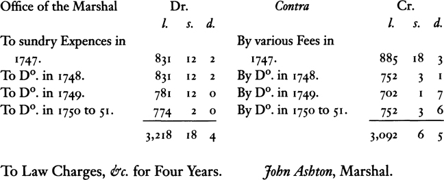 This Representation, from so great and good an Authority, naturally led your Committee to inquire, in the most strict Manner, into the Conduct and Behaviour of the present Marshal, Mr. Ashton, and likewise into the Fees, Perquisites, and Profits of his Place.