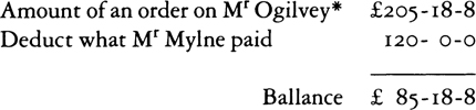 William could obtain money from Scotland during his residence in the colonies by bills of exchange. These would be drawn (i.e., issued) by a banker or merchant in Scotland for a sum of money paid in by Anne; on presentation of the bill to the drawer’s agent or “correspondent” in some colonial city the equivalent in local money (or in a further bill to obtain cash in some other place) would be paid to William. The correspondent either held money belonging to the drawer or was willing to give him credit. He would normally be informed in advance by the drawer that the bill had been drawn, and the difficulty that Anne seems to have experienced in sending £50 to William was presumably due to his failure to say where and from whom he would seek to cash her bill. She therefore sent a “letter of credit,” which probably granted credit for £50 with the bankers Hogg and Kinloch to William himself and was payable by any merchant or banker who was satisfied as to William’s identity and with the security of Hogg and Kinloch’s letter.